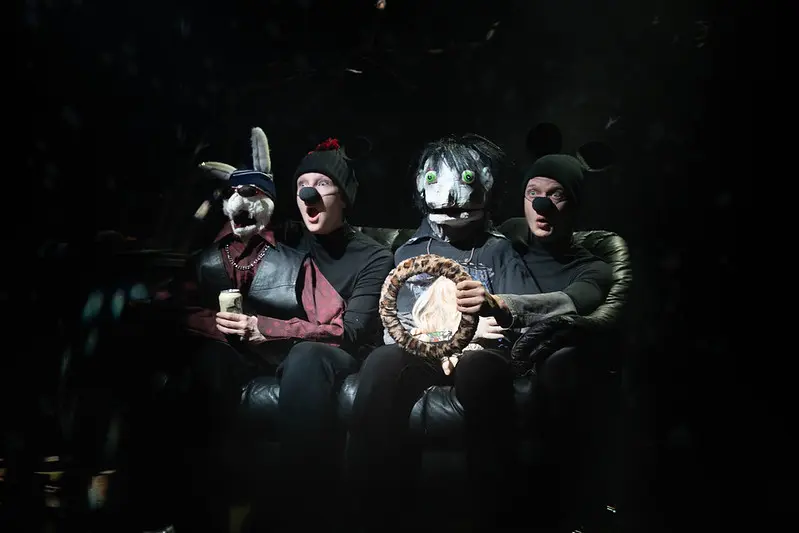 Esitys oli viäräleukainen ja nyrjähtänyt farssi sekä rujon herkkä tarina samassa paketissa. Huomasinkin itse katsovani esitystä välillä sananmukaisesti suu auki. Voiko tällaista edes tehdä – ja vielä onnistua?