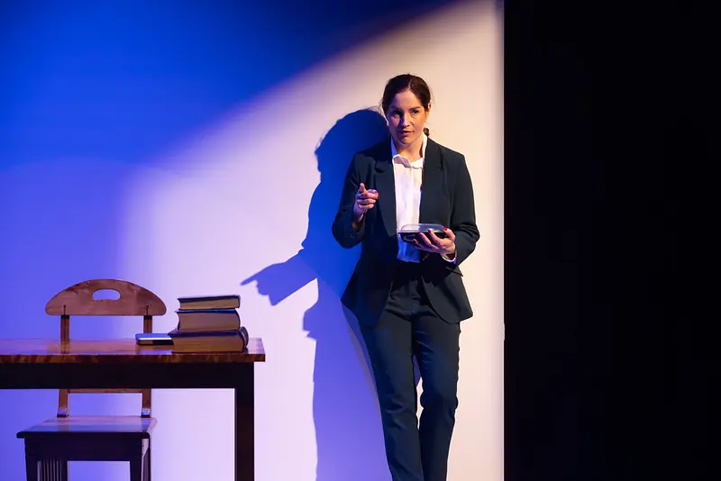 Molemmissa esityksissä kantavina voimina olivat valovoimaiset esiintyjät. Annika Poijärvi otti tekstin ja samalla katsojan lempeästi haltuunsa jo alkumetreillä. Hän toi lavalle huippujuristi Tessa Enslerin ja rakensi yksin kokonaisen maailman yksinkertaisten lavasteiden keskelle. Tessa kontrolloi muiden yläpuolella lakia ja järjestystä. Kunnes – ja tämä oli tietenkin arvattavaa – hän itse tuli raiskatuksi.